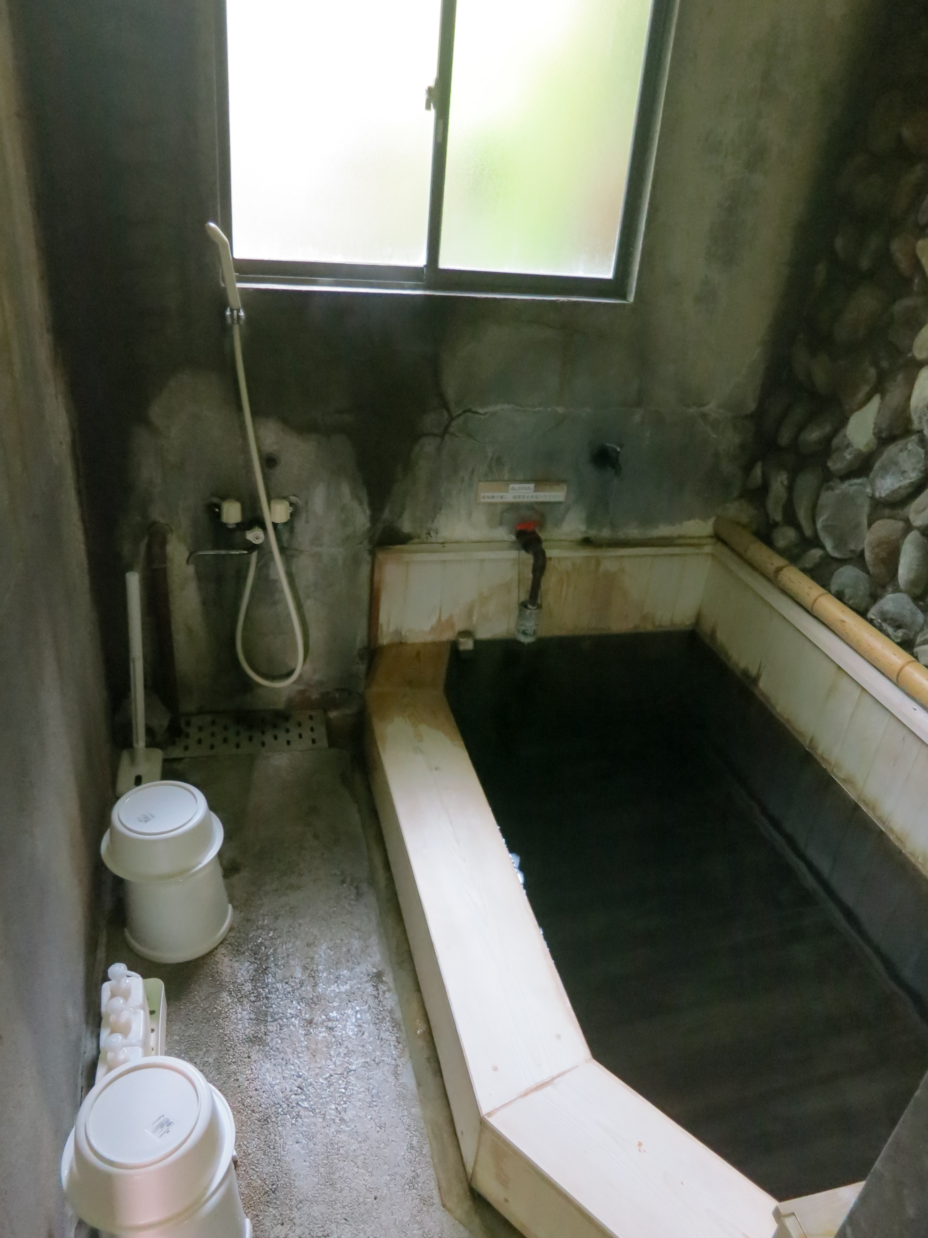 The unique character of the each inn’s bath differs from place to place. Seen here is a stand-alone bath made of stone that is then filled with mineral-rich spring water. Soothing…