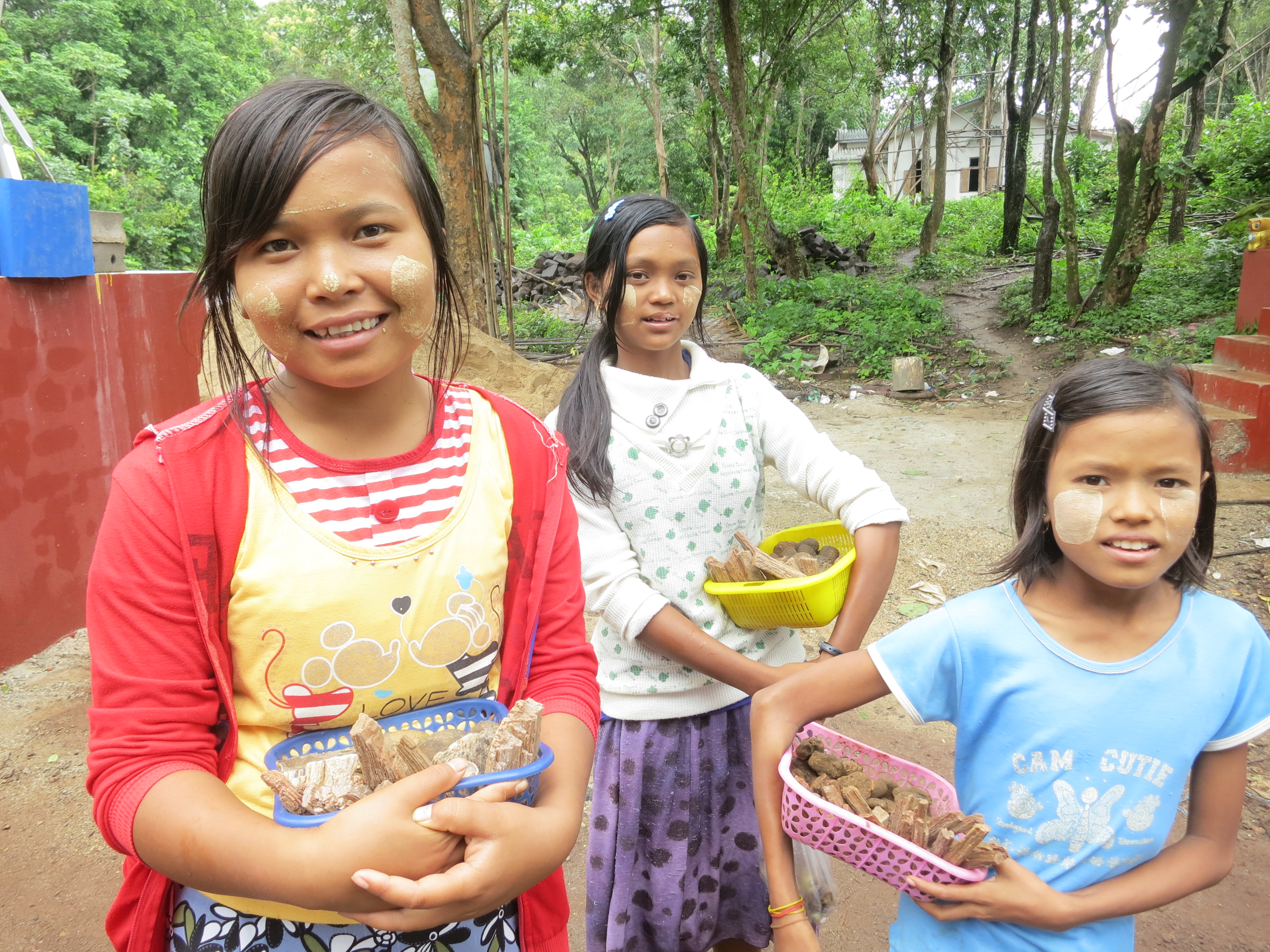 Three local children, painted with the thanaka make-up that is worn by almost all women and children of Myanmar (and many men, too), who found my presence to be quite fascinating