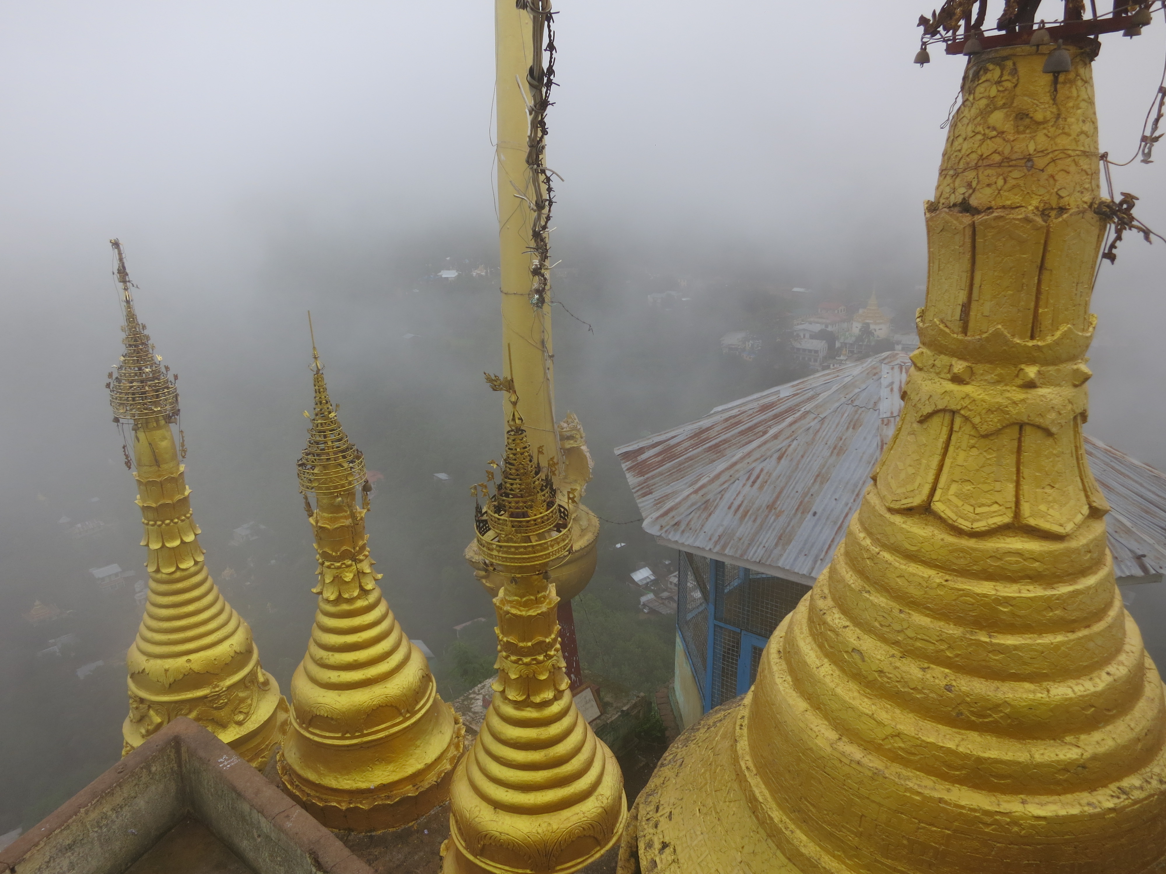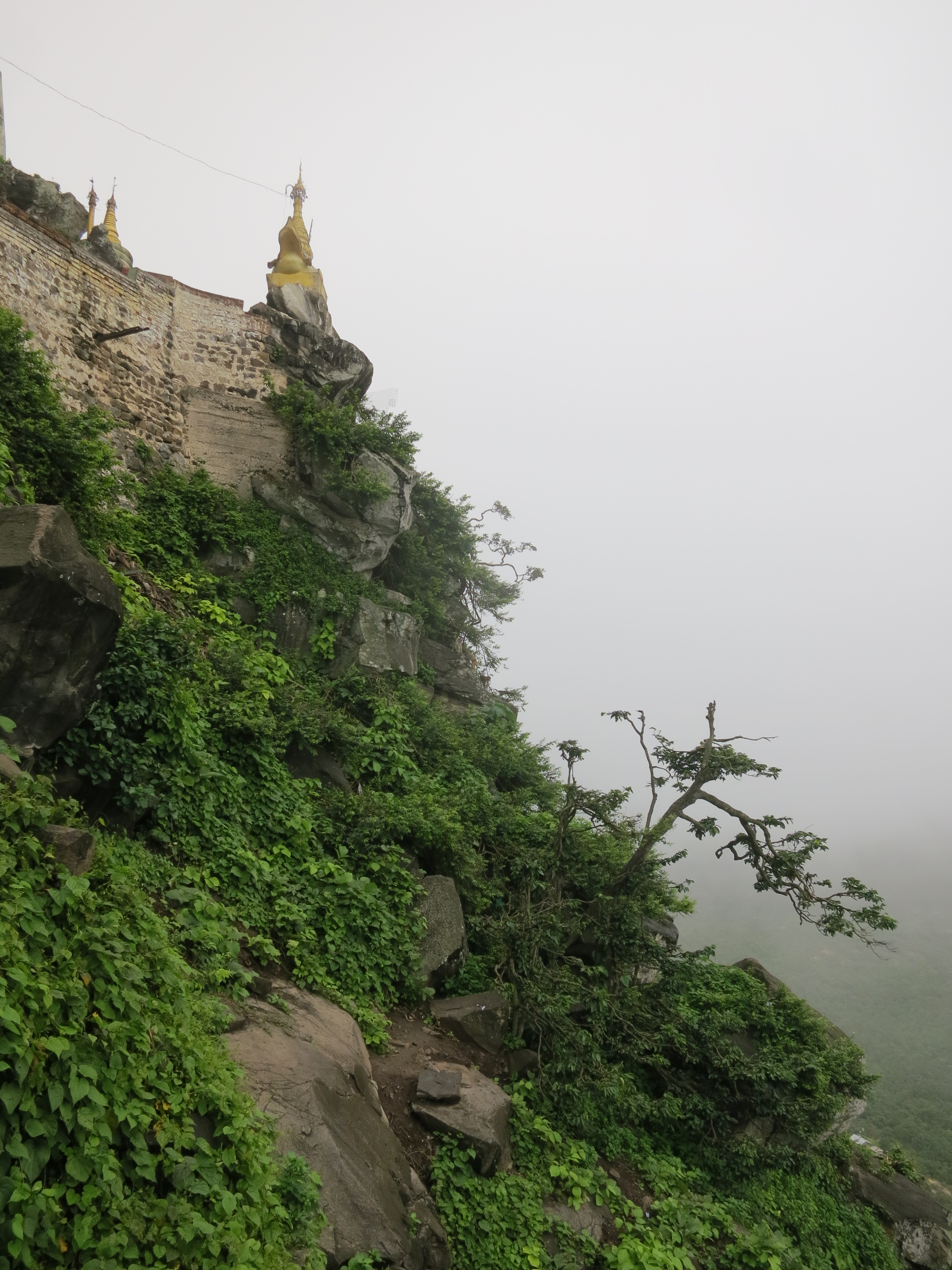 If you happen to be visiting during the rainy season as I was, however, you’ll quickly realize that the promised views looking down over the valley, or the postcard-like images of the golden temple set atop its towering peak, can be quite elusive (if not downright impossible) due to the heavy cloud-cover and frequent rain storms — which, incidentally, also gave the temple a unique, mystical quality, as it seemed as though you were floating in the clouds, suspended in the sky. Luckily, however, I also had a very patient guide to drive me up the mountain that didn’t mind spending that extra hour waiting for those few fleeting seconds where the clouds might part just enough to get a peak at the valley below.