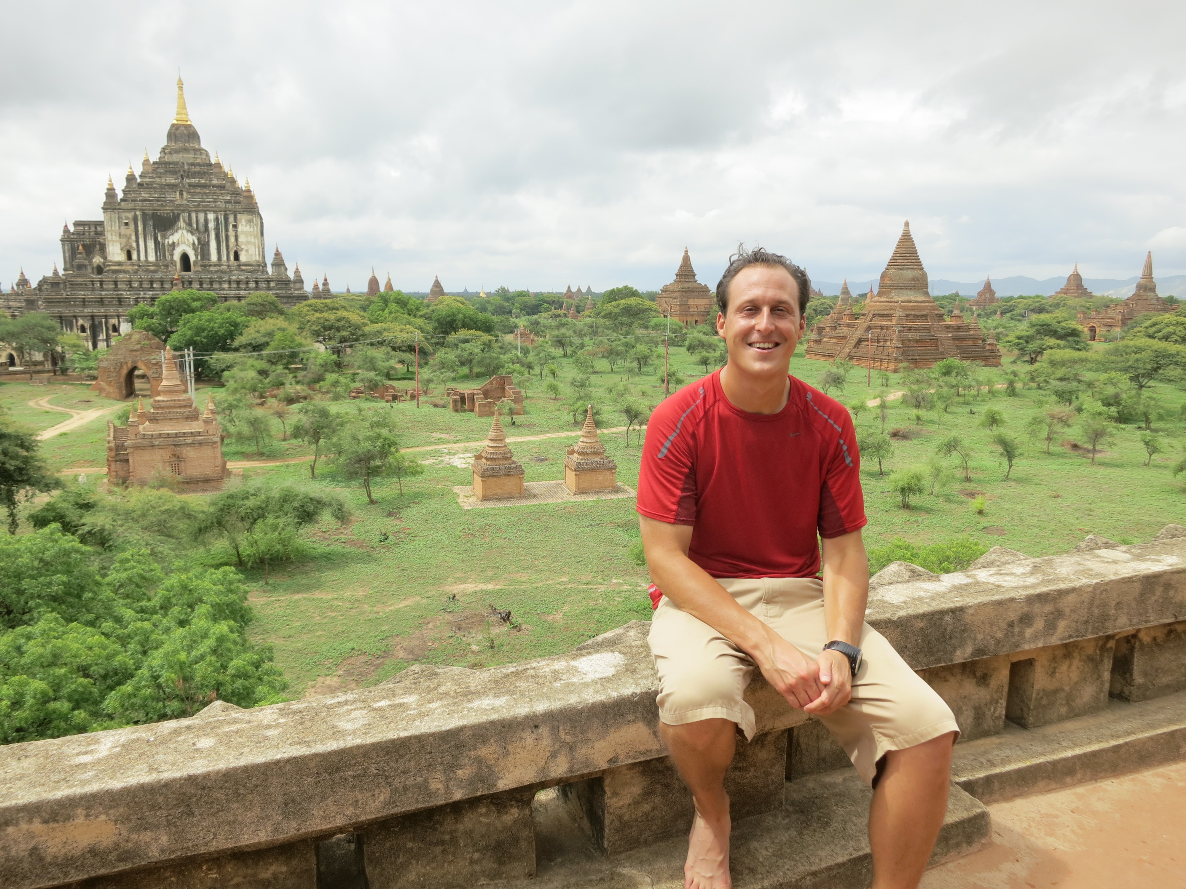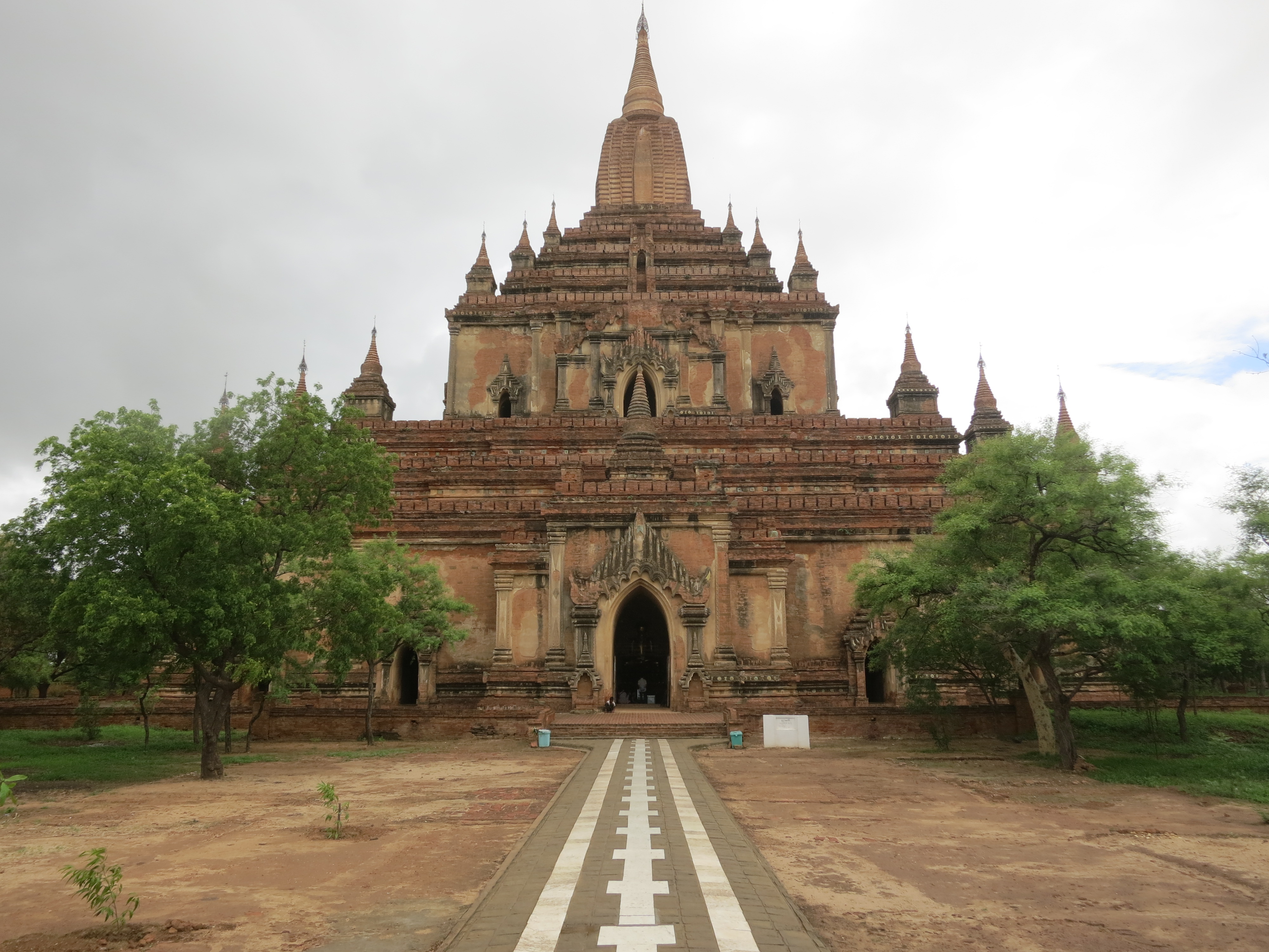 In an attempt to escape the swampy wetlands and torrential downpours that make-up the delta region surrounding the city of Yangon, the next activity on my itinerary was to move North into the (relatively) dry heartland of Myanmar to take in the temples and views of the sprawling geographical region known as Bagan. This area first came into its own roughly a thousand years ago, during the middle of the 11th century, when the Burmese people, led by King Anawrahta, were in the process of adopting Theravada Buddhism (as opposed to either Hinduism or Mahayana Buddhism) as their primary religion. King Anawrahta become so passionate about his new faith that he began to commission the construction of the first pagodas and temples that sparked a 230-year building frenzy, resulting in nearly 4,000 structures spread out over only a 26-square mile area. Why the construction ceased near the end of the 13th century — or more specifically, what caused the downfall of those in power at the time — is largely a topic of debate, but the brick and stone temples that still remain today offer a lasting legacy to the fervor of the ancient kings from a millennium ago, and has, subsequently, become one of the country’s most visited sights.