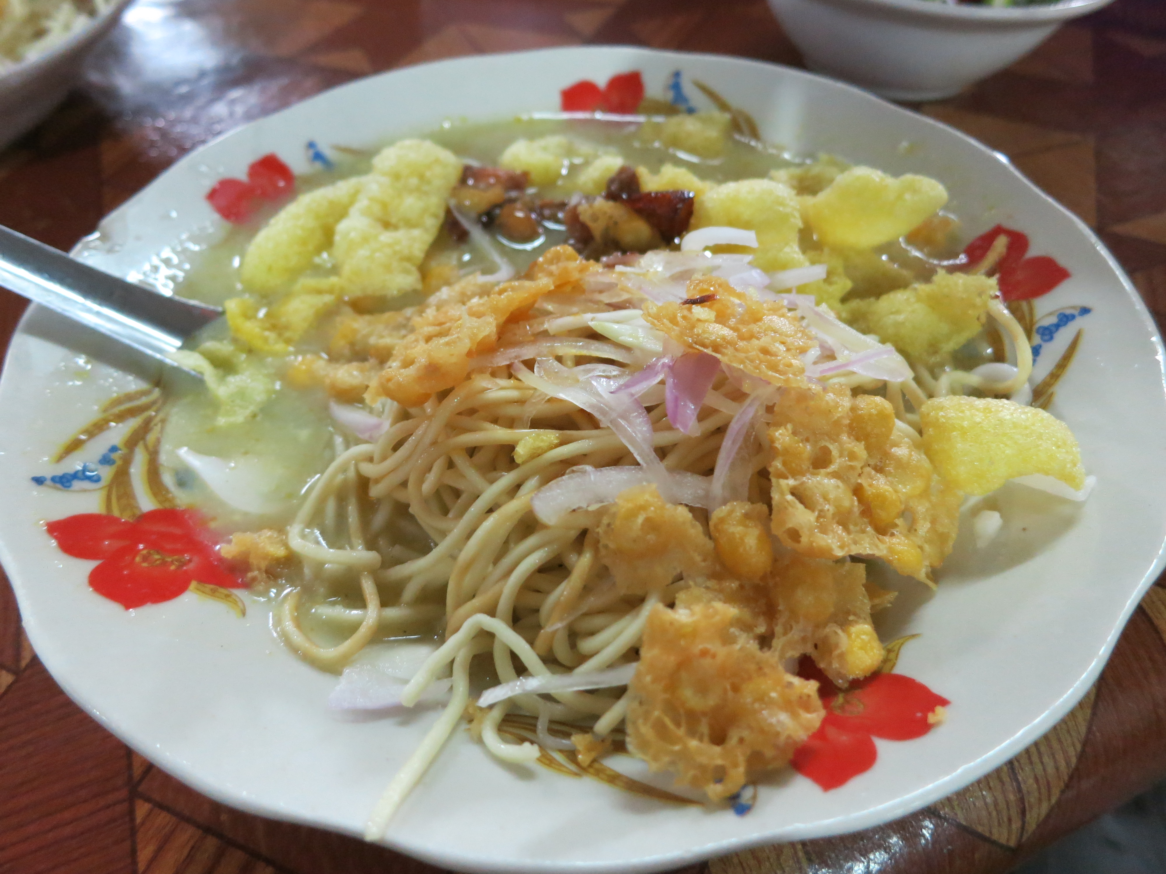 Chay Oh — another noodle soup, this time with a variety of pig organs and offal bits swimming around in there, that is particularly favored by the Burmese
