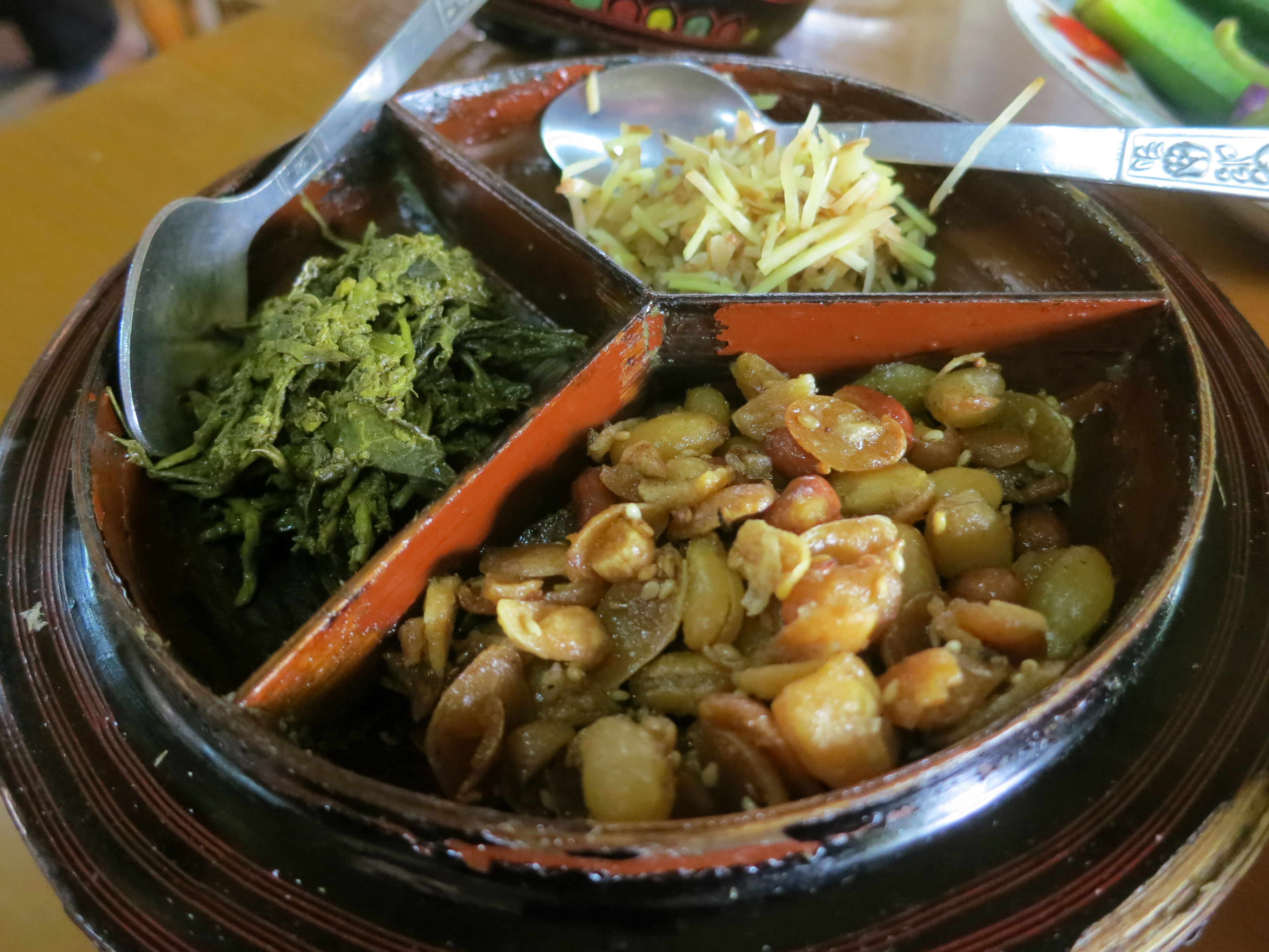 If the Burmese can grow it, pick it, harvest it, raise it, ferment it, or just simply stumble upon it, they have probably already made a salad out of it.  Often served at room temperature and with a focus on maintaining a balance of flavor and texture, these carefully designed salads often push the boundaries on the definition of a “salad.”  Regardless, however, they are all exceedingly delicious — so much so that this became my most anticipated part of any meal (and I’m not even a salad type of person, as you well know).  Here are a few examples: