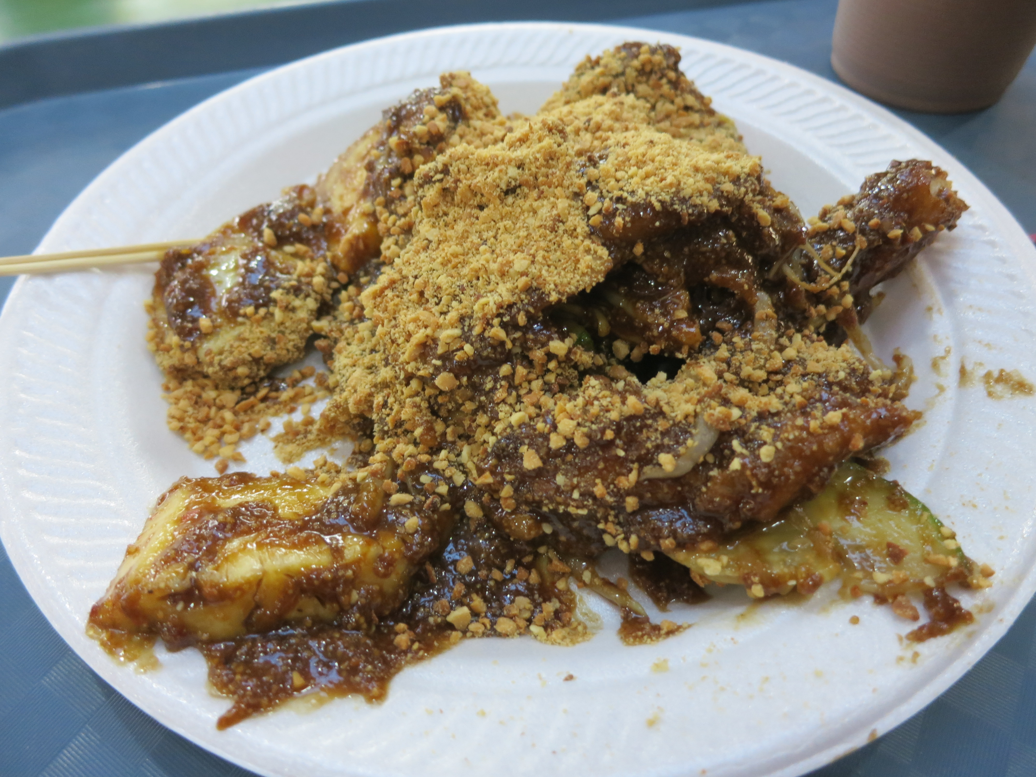 Rojak — a mix of fruits, vegetables, deep-fried bits, and whatever else the chef wants to throw in, all mixed together in a spicy-sticky sauce and topped with crushed peanuts. It sounds as though it shouldn’t work, but somehow it does.