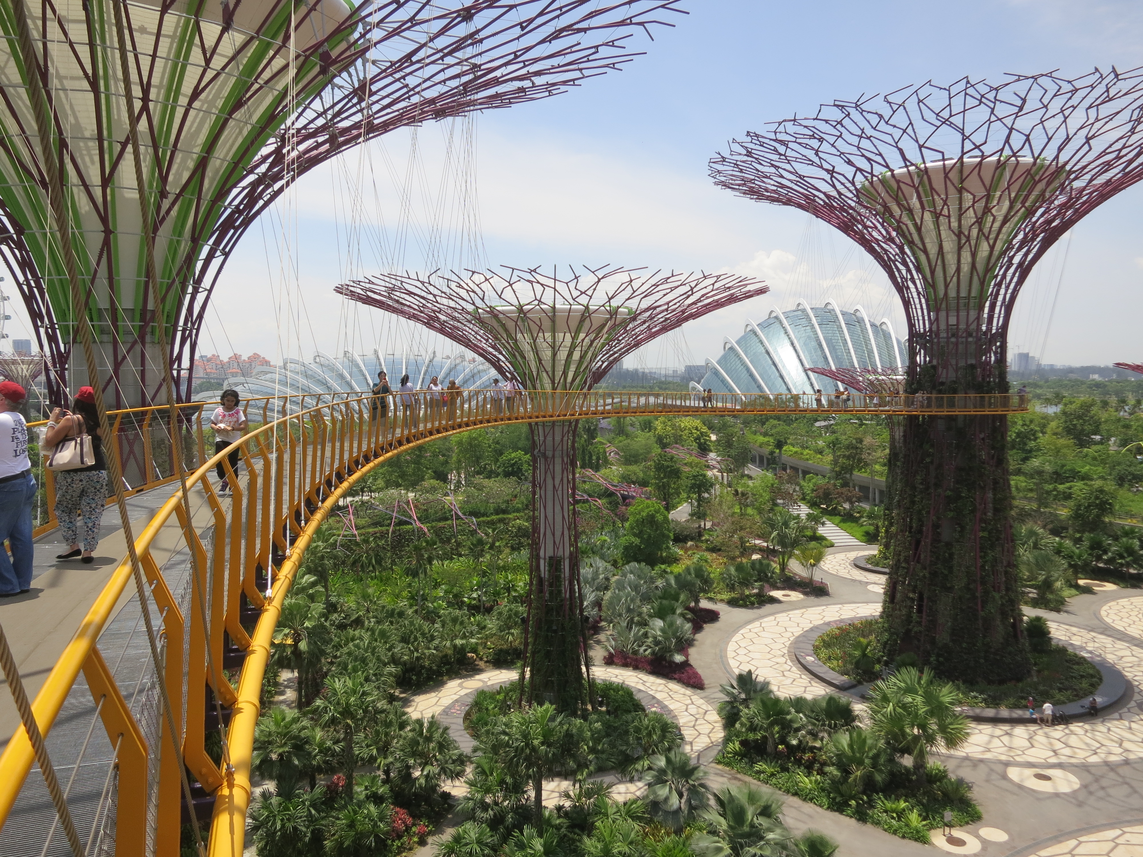 Beyond the quick slide show above, one area that I will expand upon is the newly completed Gardens by the Bay. During my last visit, the entire area was one large construction sight, but getting a chance to see the finished product is something that I’ve eagerly been awaiting ever since I heard of its completion. Designed to showcase a variety of plant, tree, and flower species, to further the on-going conservation process, and to simply offer citizens a scenic area in which to relax, this collection of bio-domes, gardens, and technologically advanced super trees is a sight to behold: