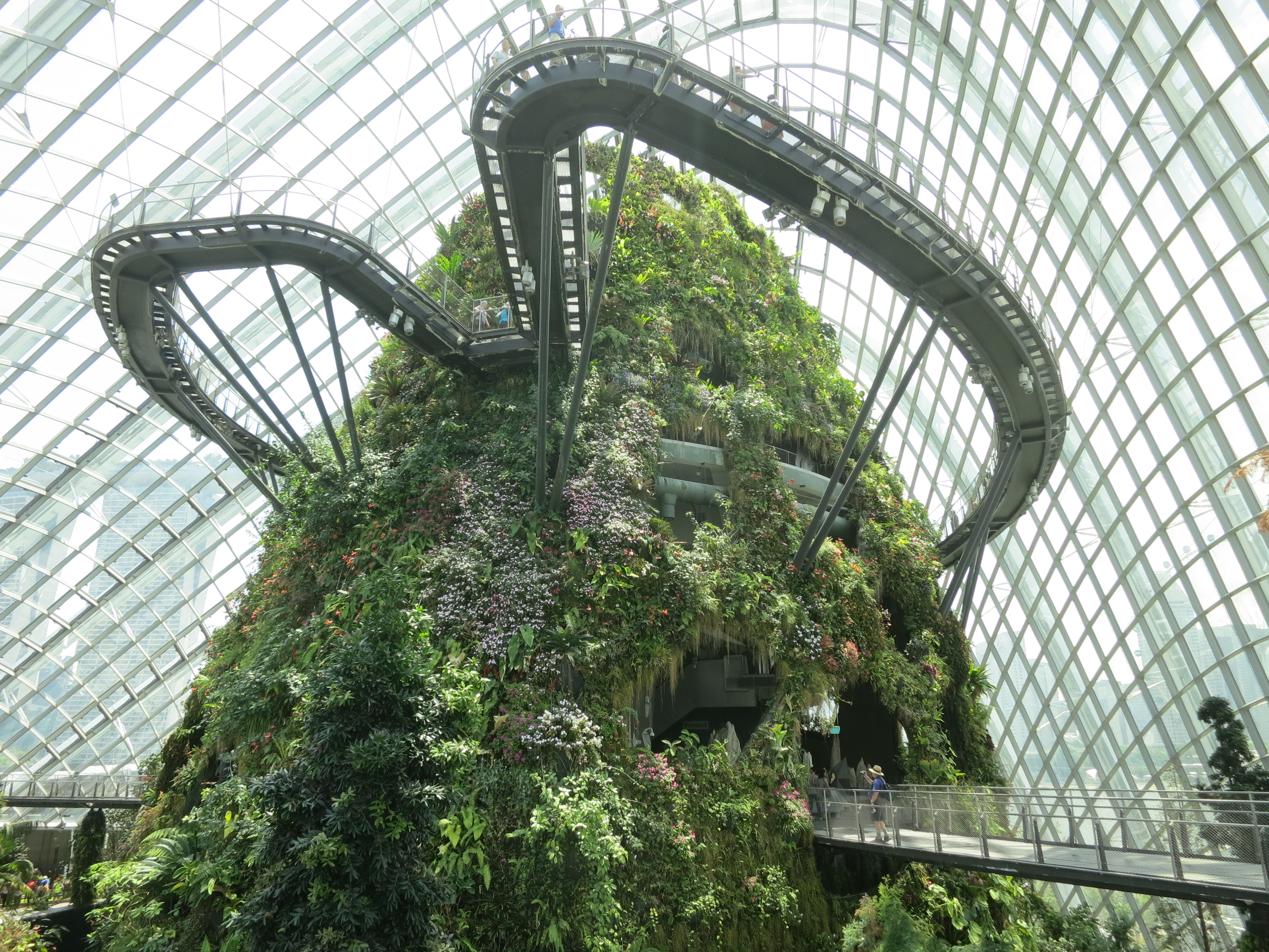 The flower dome, a completely enclosed and climate-controlled bubble that houses species of flowers from almost every region of the world